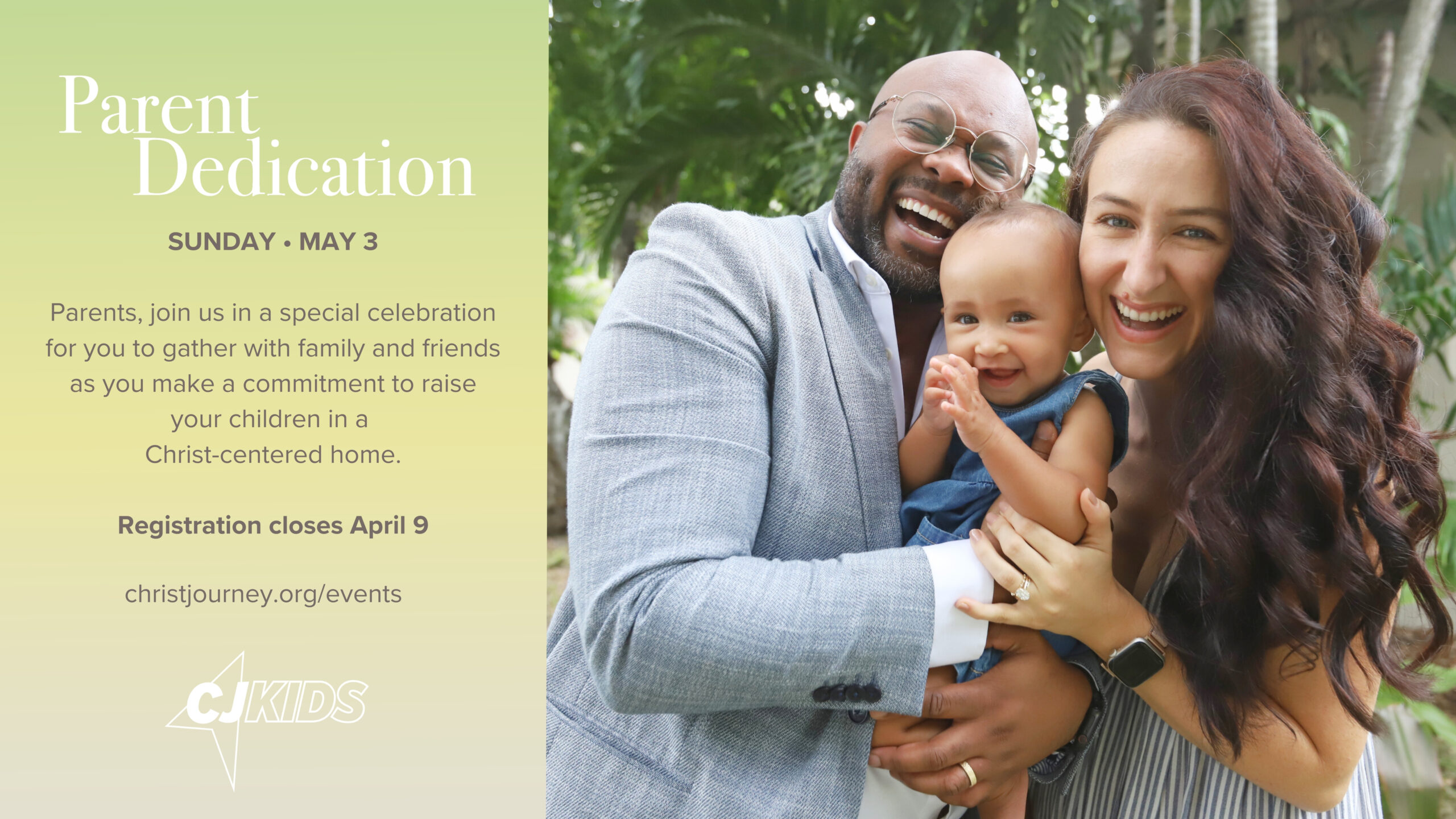 • Parent Dedication Celebration – May 3 (10AM or 12PM)